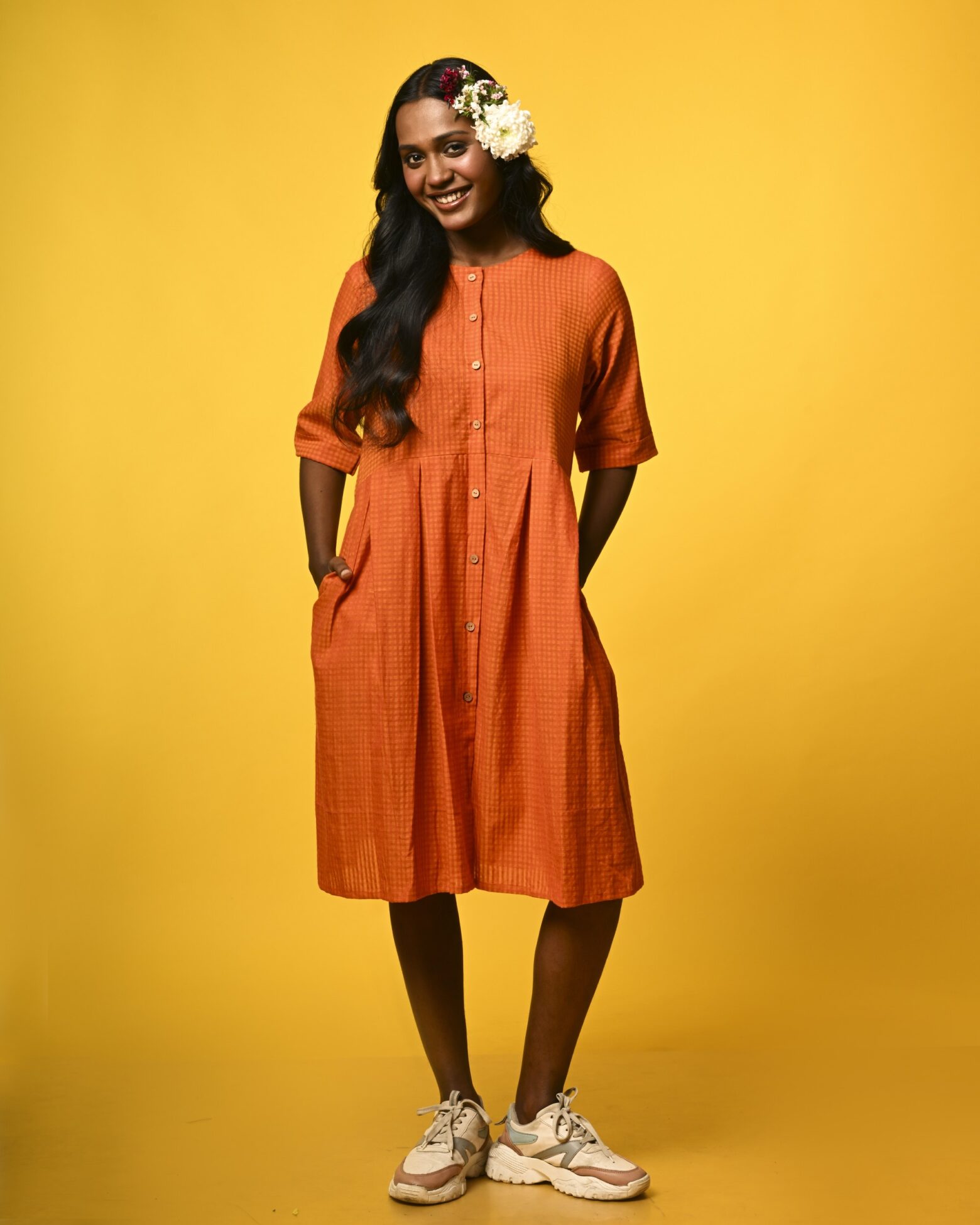 Crafted in pure cotton with an elegant self-check weave, this dress is the definition of subtle summer luxury. The breathable fabric keeps you cool and comfortable, while the textured pattern adds quiet sophistication.